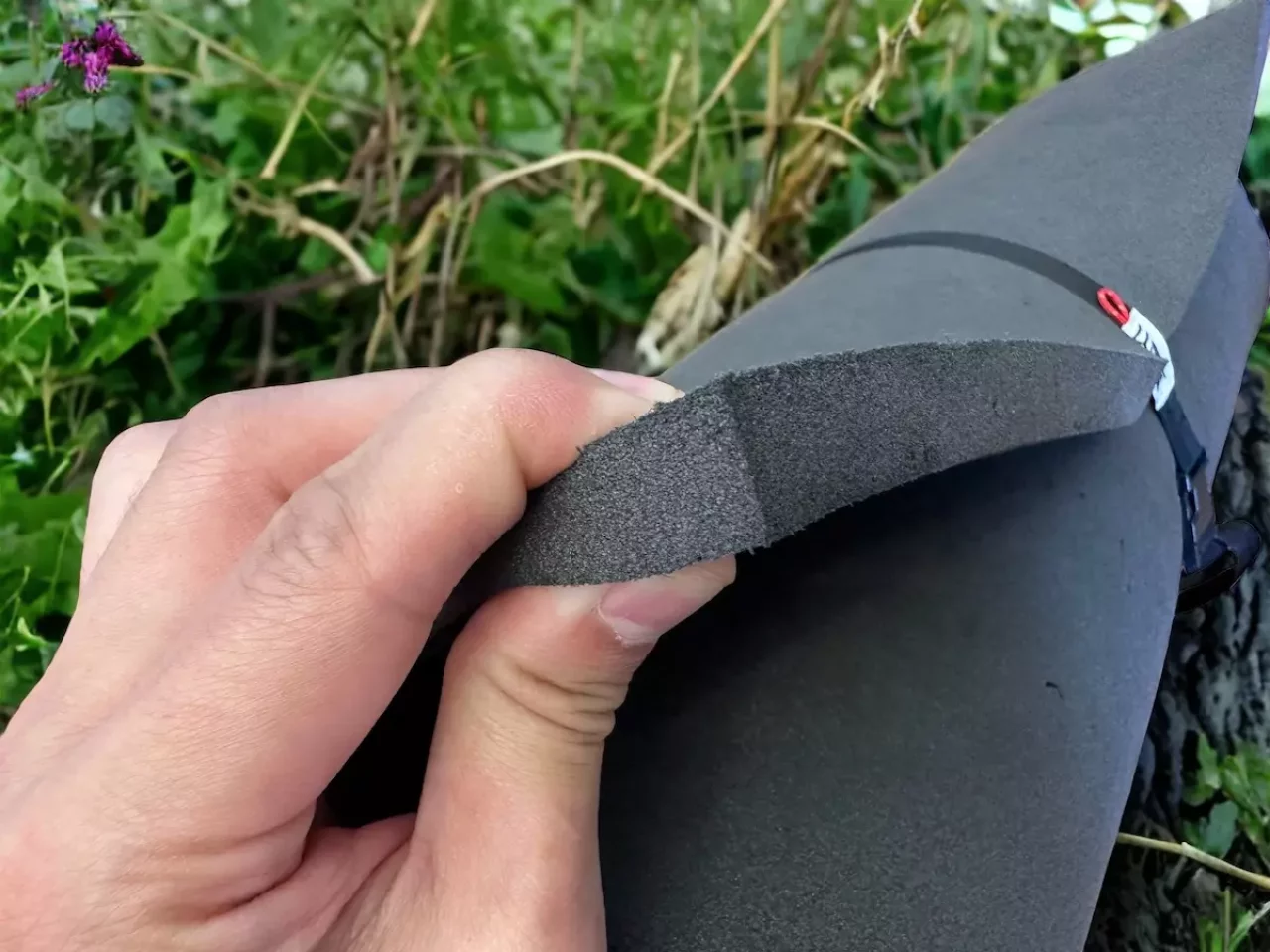 エアマットと違って空気を膨らます手間がないので、すぐに取り出してゴロンと休憩したり、手荒に扱っても空気が抜けるリスクもないので岩場の上に敷いて座布団のように使えます。とても軽いので強い風に飛ばされないように注意が必要です。