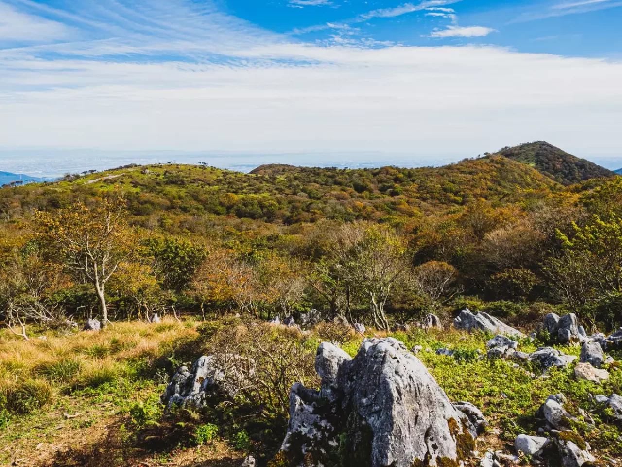 展望台では、視界が一気に開けて周囲一面の紅葉を見渡せます。ひるがの高原コースは登山経験が豊富でなくても挑戦可能です。