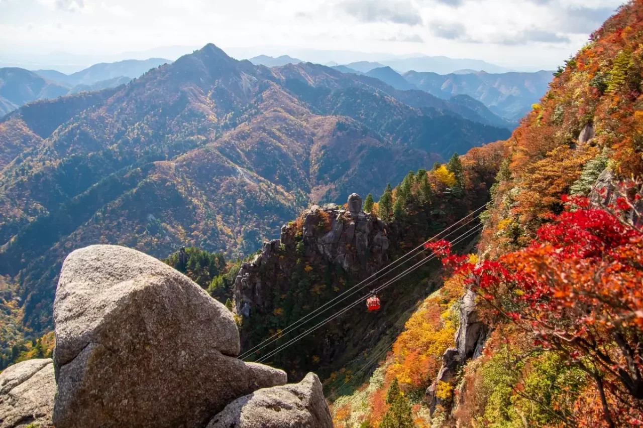 観光スポットとしても名高い御在所岳は、ツツジやクスノキなどが色鮮やかに染まり、山頂から温泉街まで広がる麗しい紅葉を眺められます。奇岩と紅葉のコントラストに目を奪われ、なかなか足が進まないことでしょう。