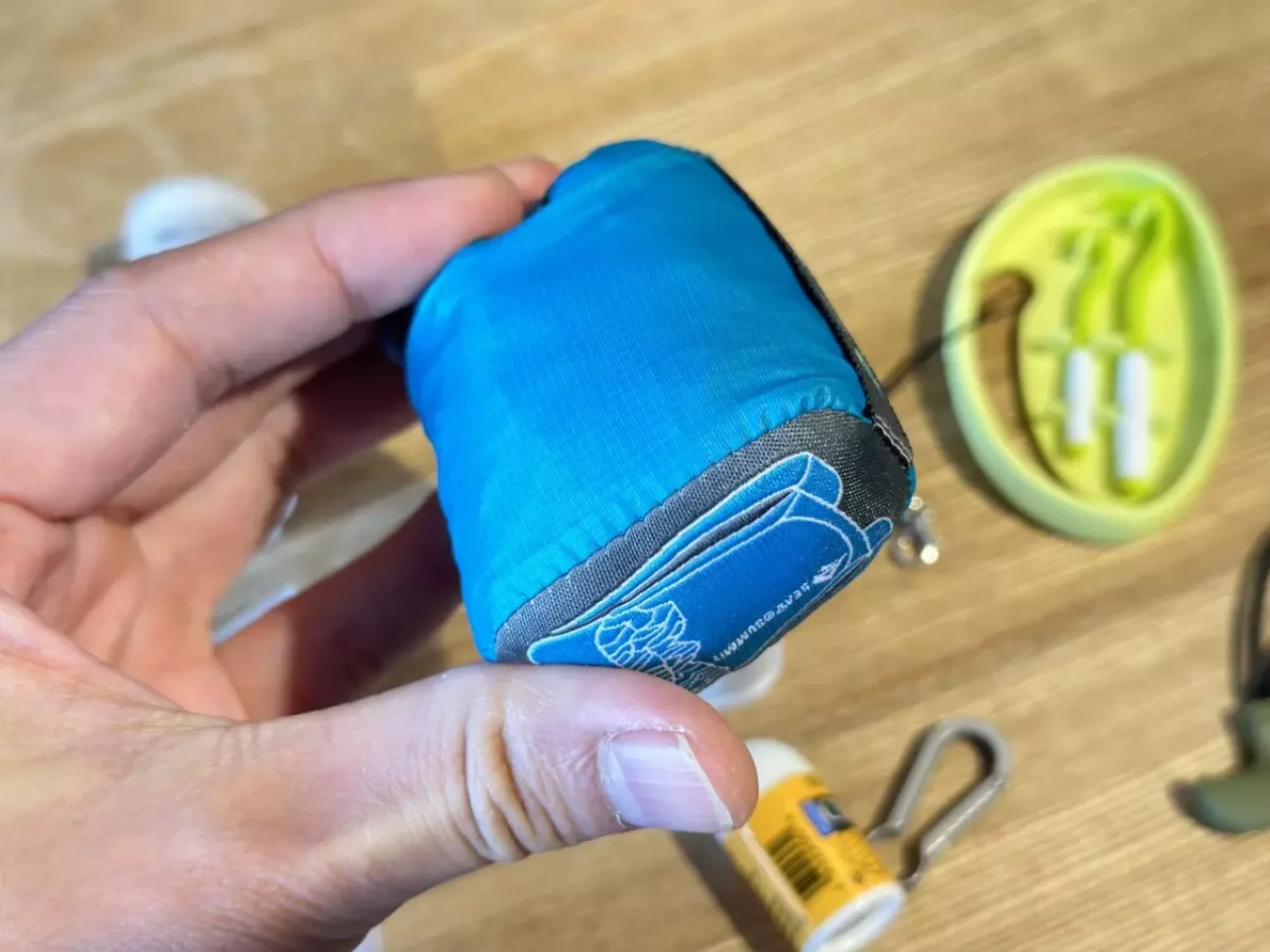 僕はこれを 登山ではアタックザックとして 使用して、 登山 終わりには買い物バック、 普段からも 旅行や 出かける時に ウエストポーチの中に 入れておくと「 あって良かった」 と思うことが多いアイテムです。