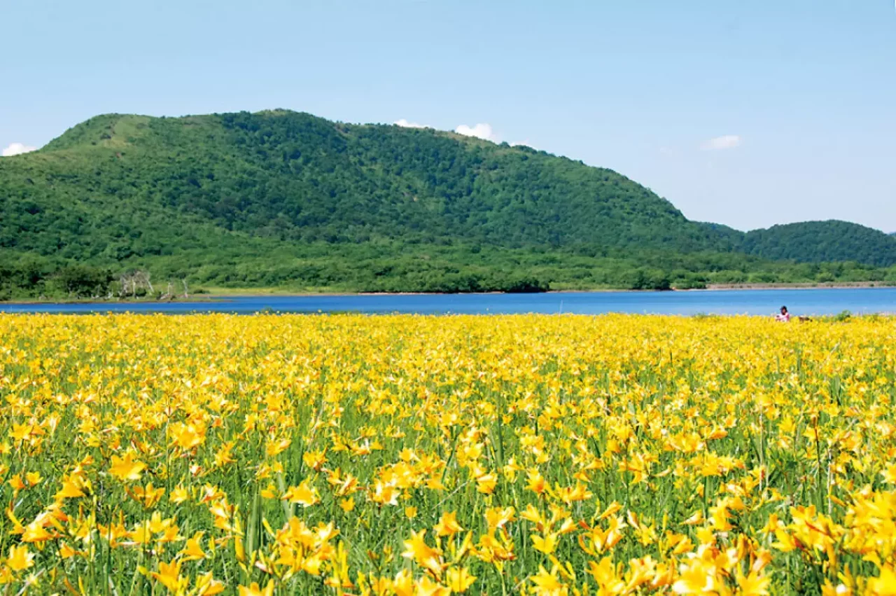 雄国沼湿原には、黄色の絨毯を敷きつめたように広がるニッコウキスゲの大群落を見ることができます。