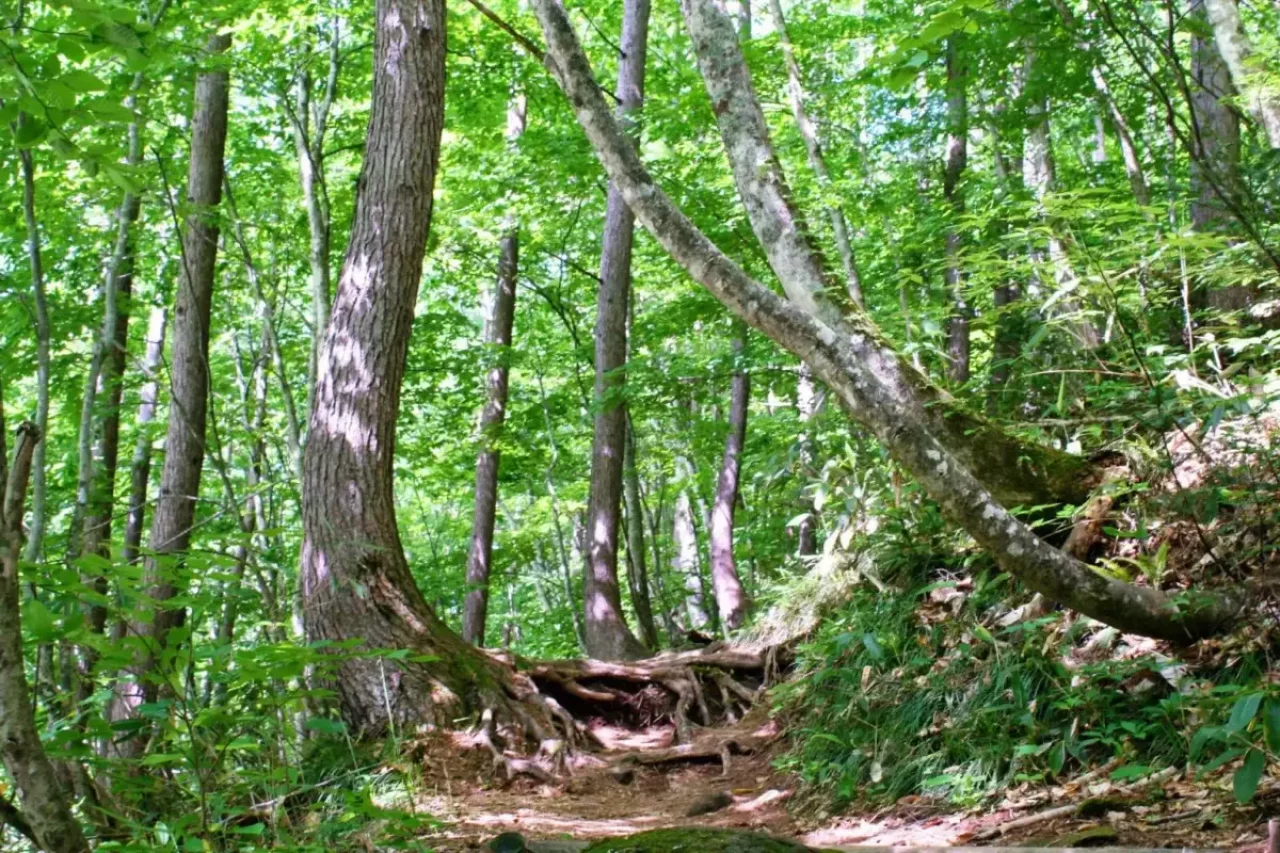 せせらぎ探勝路と呼ばれる、雄子沢川のせせらぎを聴きながら雄国山を目指すコースです。