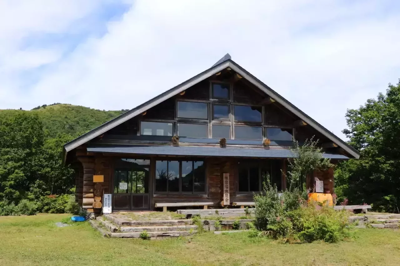 雄国沼休憩舎には休憩スペースと協力金100円で利用できるトイレがあります。休憩舎の前を左、ベコ石を過ぎて降りていけば雄国沼の湖畔に出られます。