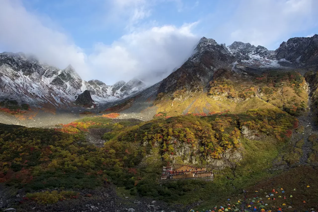 例えば登山口で気温20度で風速2mの場合は体感温度が18度となります。そこから標高1000m上で風速が5mあったと仮定すると、気温は6度下がって14度、体感温度は14-6で8度となります。朝出発の場合は登っている最中に気温が上がる可能性が高いので、全てがこのような仮説に当てはまるわけではありませんが、体感温度が18度から8度になることがあるのが登山です。