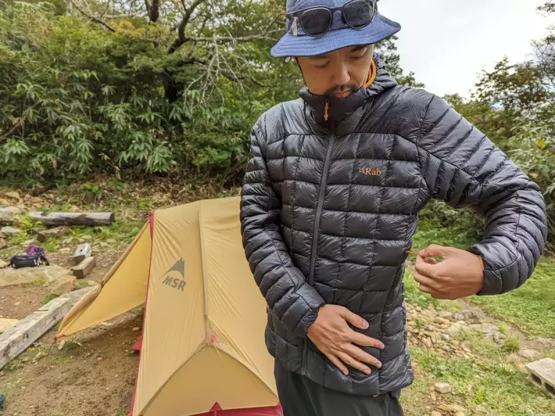 ダウンジャケットはこのダウンの強さを生かして行動着ではなく保温着として位置付けるのが正当です。インナーダウンと呼ばれる薄手タイプのダウンジャケットを行動着として着用する方もいらっしゃいますが、汗で濡れると保温着として機能しなくなるリスクがあるため、その場合は化繊綿を選択するのが正解といえます。