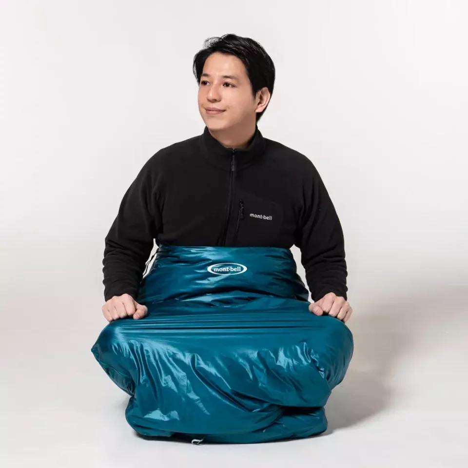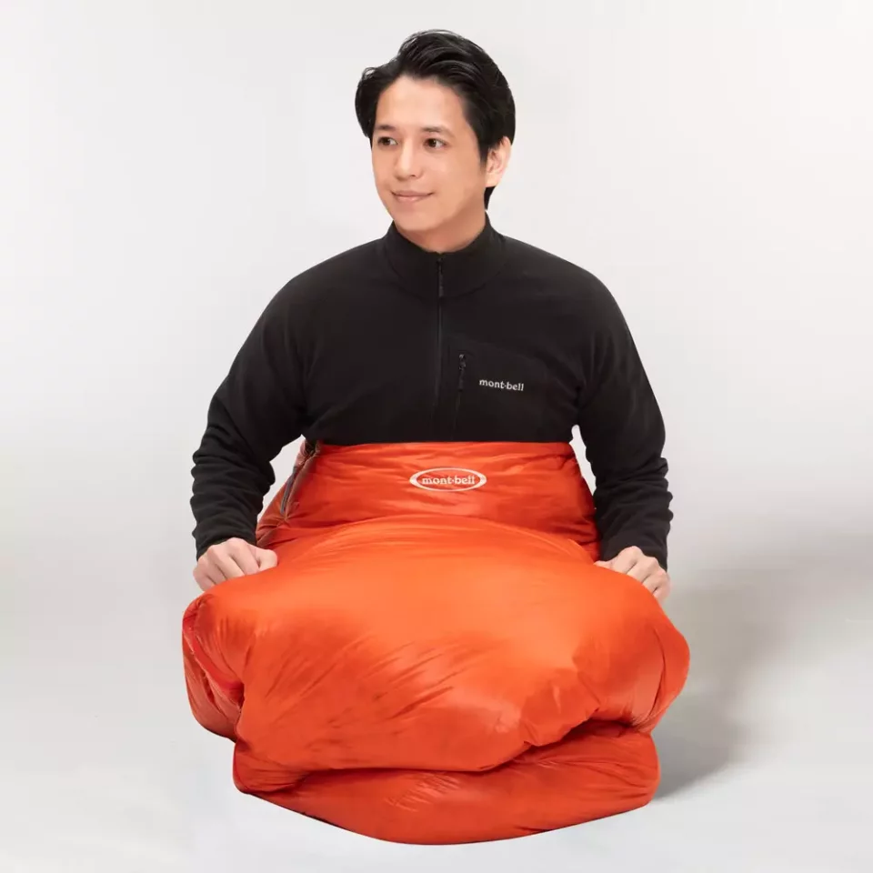 モンベルのシュラフは他のメーカーのシュラフとは異なった、2つの特徴があります。1つはスーパースパイラルストレッチシステムで伸縮率135%で、シュラフがストレッチします。これによって寝ている時に足を曲げる、腕を曲げるなどで突っ張り感がありません。