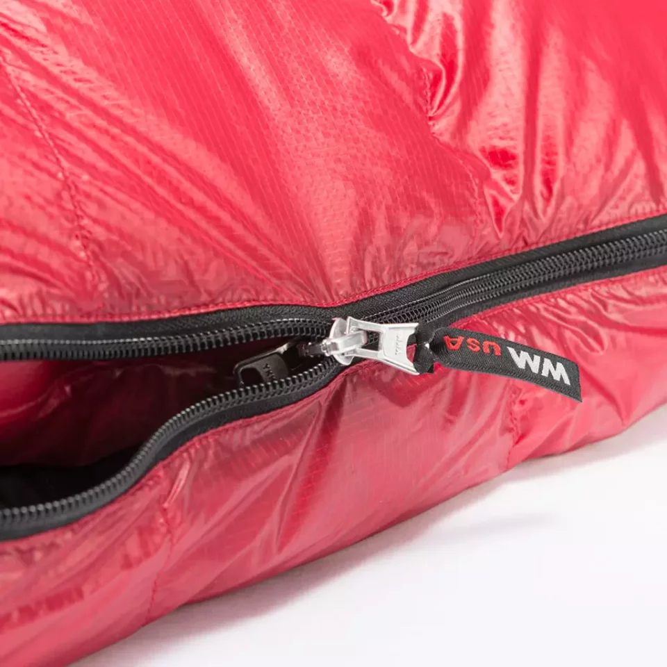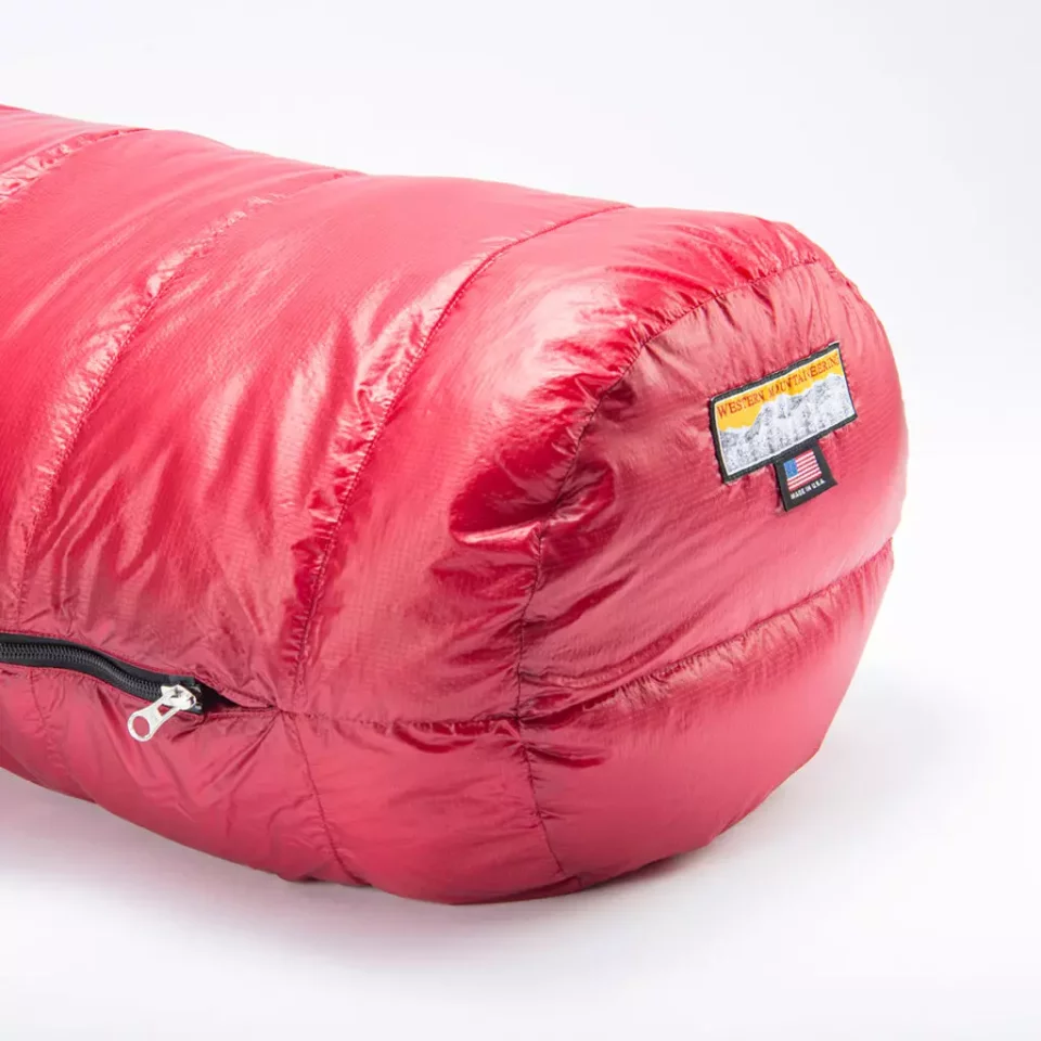 高品質で保温力に優れたダウンを使用した軽量で暖かなシュラフです。フィルパワーにおいては独自のテストで現実的に評価した測定を採用しています。またダウンが含有するガチョウ由来の油分を洗わずに使用することで半永久的に撥水性を保ちます。本来ならばこの油分が嫌な臭いを引き起こすのでどのメーカーも洗浄するのが常とされていますが、ウエスタンマウンテニアリングは異なります。