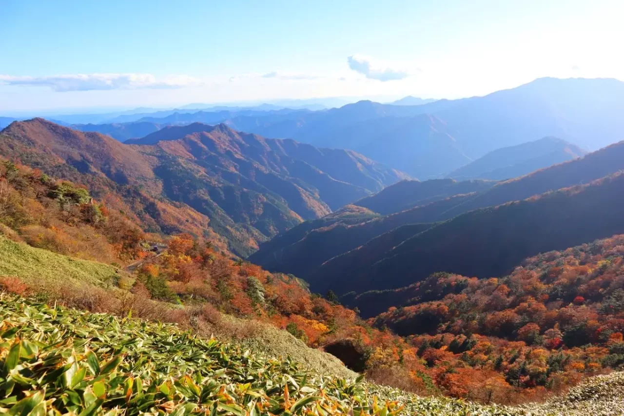 カエデやブナ、カンボクなどの木々が美しく紅葉する伊吹山は初心者にぴったりの山です。テラス駐車場から山頂までは3つの登山道がありますが、長くても片道1.5㎞、短いコースだと500mと登山が初めての方でも挑戦できます。
