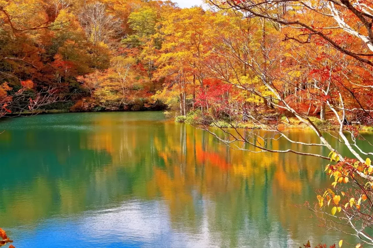 蔵王山といえば樹氷など冬登山のイメージが濃厚ですが、紅葉の景色もまた格別。初心者には短時間で登れる「沼巡り」がおすすめです。特にドッコ沼ではエメラルドグリーンの池と紅葉が立ち並ぶ、美しい景色が見られます。