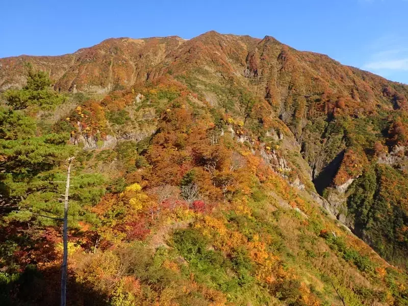 また秋には彩った鬼が面山の大岩壁が目に飛び込み、さらに鬼が面山山頂からは浅草岳の雄姿が見えます。