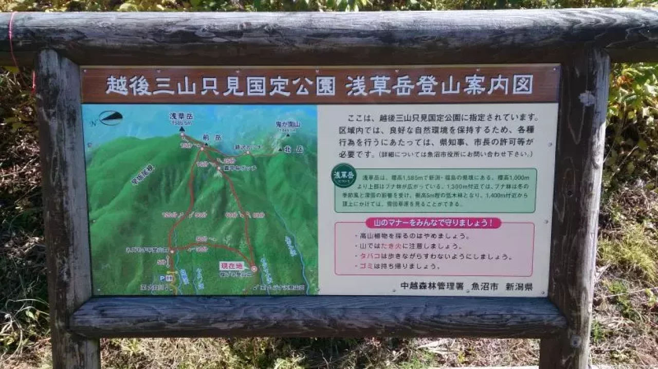 浅草岳へ登るには福島県側に2か所、新潟県側に3か所の登山口がありますが、今回は代表的な登山口3か所からのルートをご紹介します。