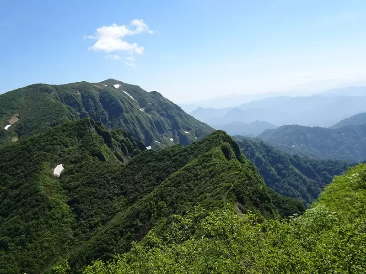 尾根に出れば右手に浅草岳が見えてきます。