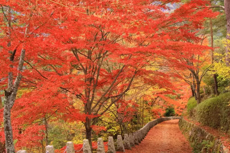 約3万本の桜が満開になる名所として名をはせる吉野山ですが、秋になるとその桜の木が紅葉し、美しい景色を見せてくれます。長期間紅葉が楽しめますが、ピークは例年11月中旬頃です。