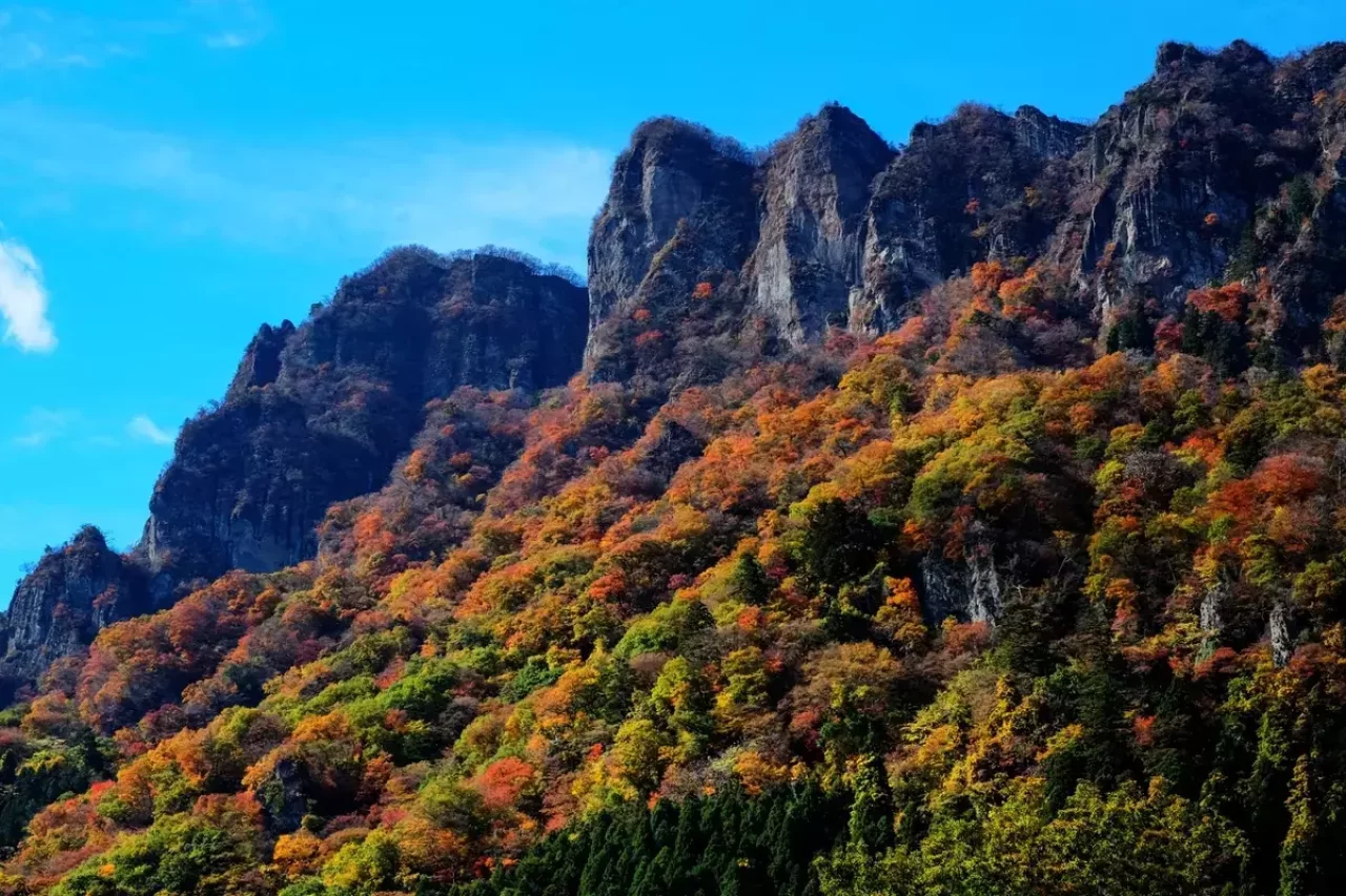 山頂から見下ろす紅葉は神秘的なもですが、垂直に近い鎖場や両端が切れ落ちた絶壁を渡るなど上級者向けのコースとなっています。初心者の方は「石門巡りコース」で中腹のハイキングコースを楽しむのがおすすめです。