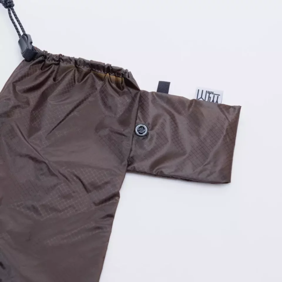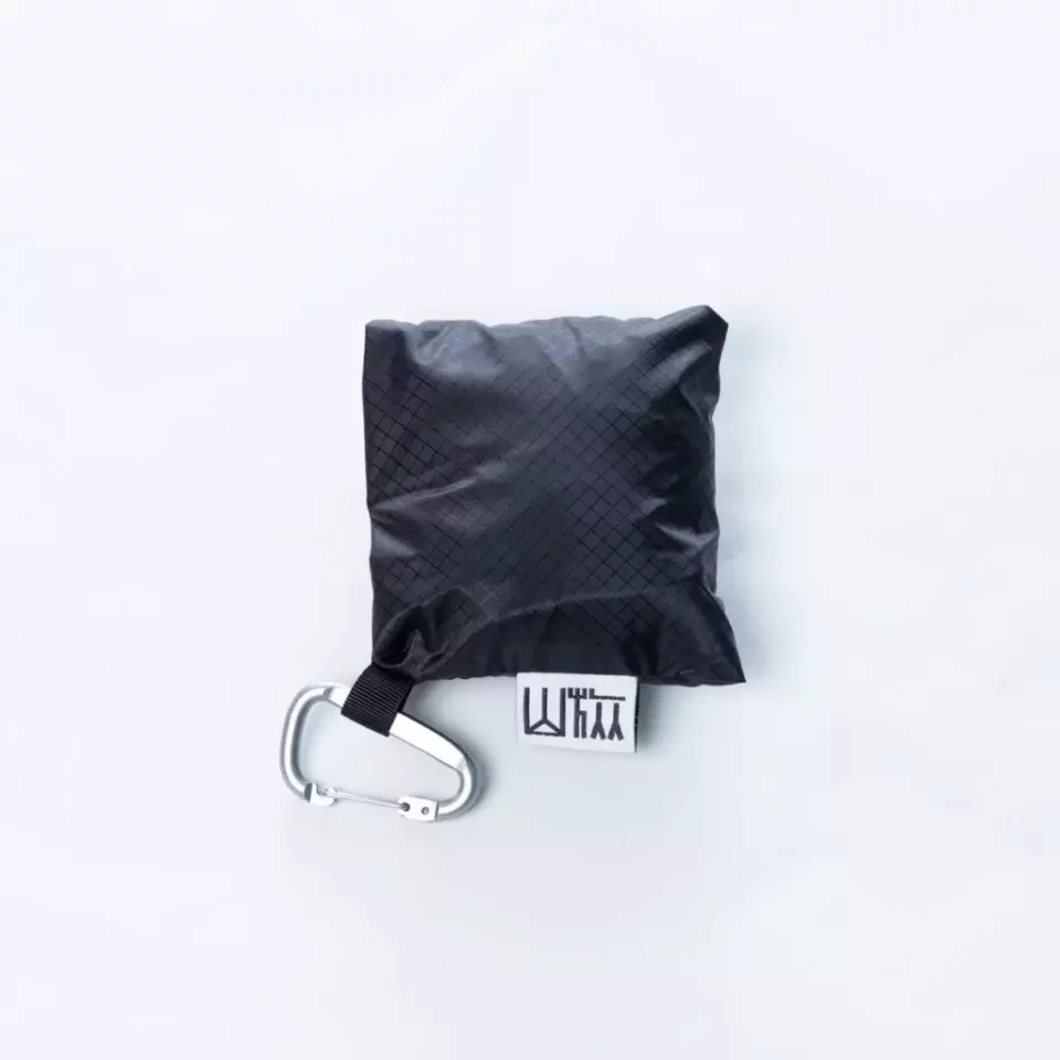 パッカブルした後にカナビラを取り付けることができるので、ザックやズボンのベルトループに引っ掛けておくこともできるし、ズボンのポケットやポーチの中に収納しておくこともできます。
