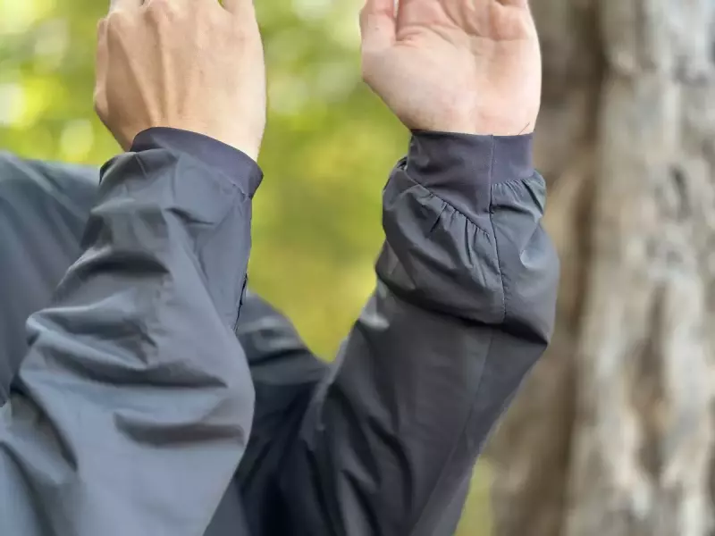 袖口はストレッチ素材で程よく手首にフィットし、裾には左右にドローコードがついており、裾からの冷気の侵入を防ぐように腰回りにフィットします。