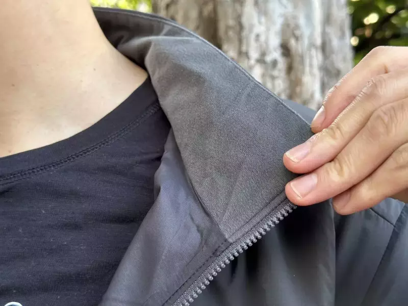 襟の部分は、首に風が当たらない高さで、内側にあるフリース素材が首を温めてくれます。