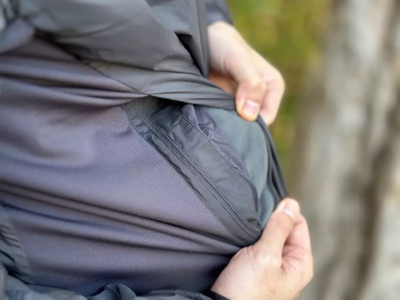 アトム ジャケットのデザインで最も特徴的なのが体の側面に使用されたフリースです。このフリースはストレッチ性に優れているだけでなく、コアロフトよりも通気性に優れているので、アトム ジャケットの中に熱がこもり始めると効率的に換気をしてくれます。