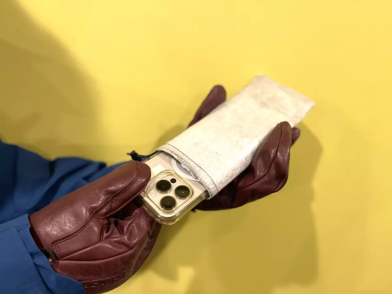 しかしながら頻繁に使用する方は分厚いグローブで保温ケースからスマートフォンを出すのが面倒に感じてしまうので、その場合はアストロフォイルのみをポケットの中に入れることでスマートフォンを取り出しやすく、同時に急激な温度低下も防ぐことができます。
