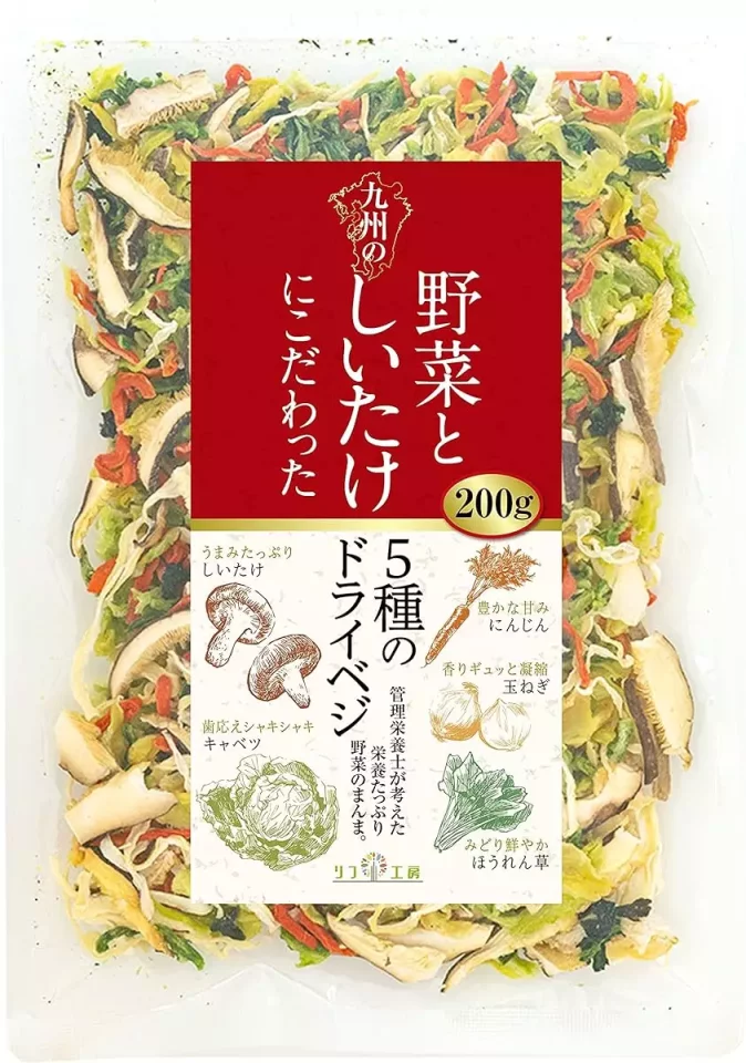 様々な乾燥野菜を試してきた中でも水やお湯で戻した後にシャキシャキとした食感があるし、スープに追加すると甘みが出るし、今では山の必須食材となっています。お湯で戻した後にすしのこで味付けをすれば簡単おしんこになるし、フリーズドライのスープやラーメン、アルファ米に追加して楽しんだり汎用性抜群です。特にカップラーメンへの追加はおすすめです。
