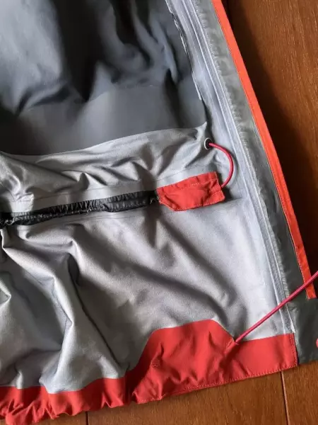 ポケットはダイナアクションパーカは全部で5つ備わっており、ザックのウエストハーネスが干渉しない位置にジッパー付きのポケットが左右2箇所、ジッパー付きの胸ポケット、内側にはダイナアクションパーカが左手側にジッパーなしのポケット1箇所、右手側にジッパー付きポケットが1箇所。ストリームパーカはダイナアクションパーカとは逆で左手側にジッパー付き、右手側にジッパーなしとなっています。さらに左の胸部分にジッパー付きポケットが1箇所あります。