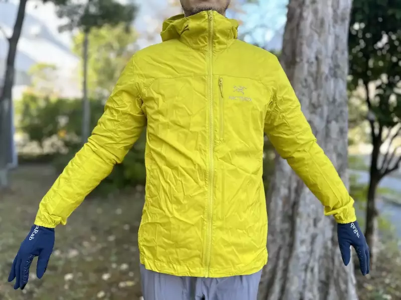 様々なウィンドシェルがある中でも軽量でストレッチするモデルは少なく、着用して行動した時にどうしても突っ張り感があって、ストレスを感じることが多いのですが、アークテリクスのスコーミッシュ フーディはとにかく動きやすく、それによって着用している感覚が少ない着心地の良さがあります。