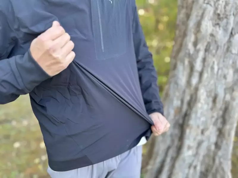 またアウターを脱いだ瞬間に寒く感じるようなことがないのは表地のフォーティアスエア50による防風性で、体温調整がしやすいミドルレイヤーだと感じます。