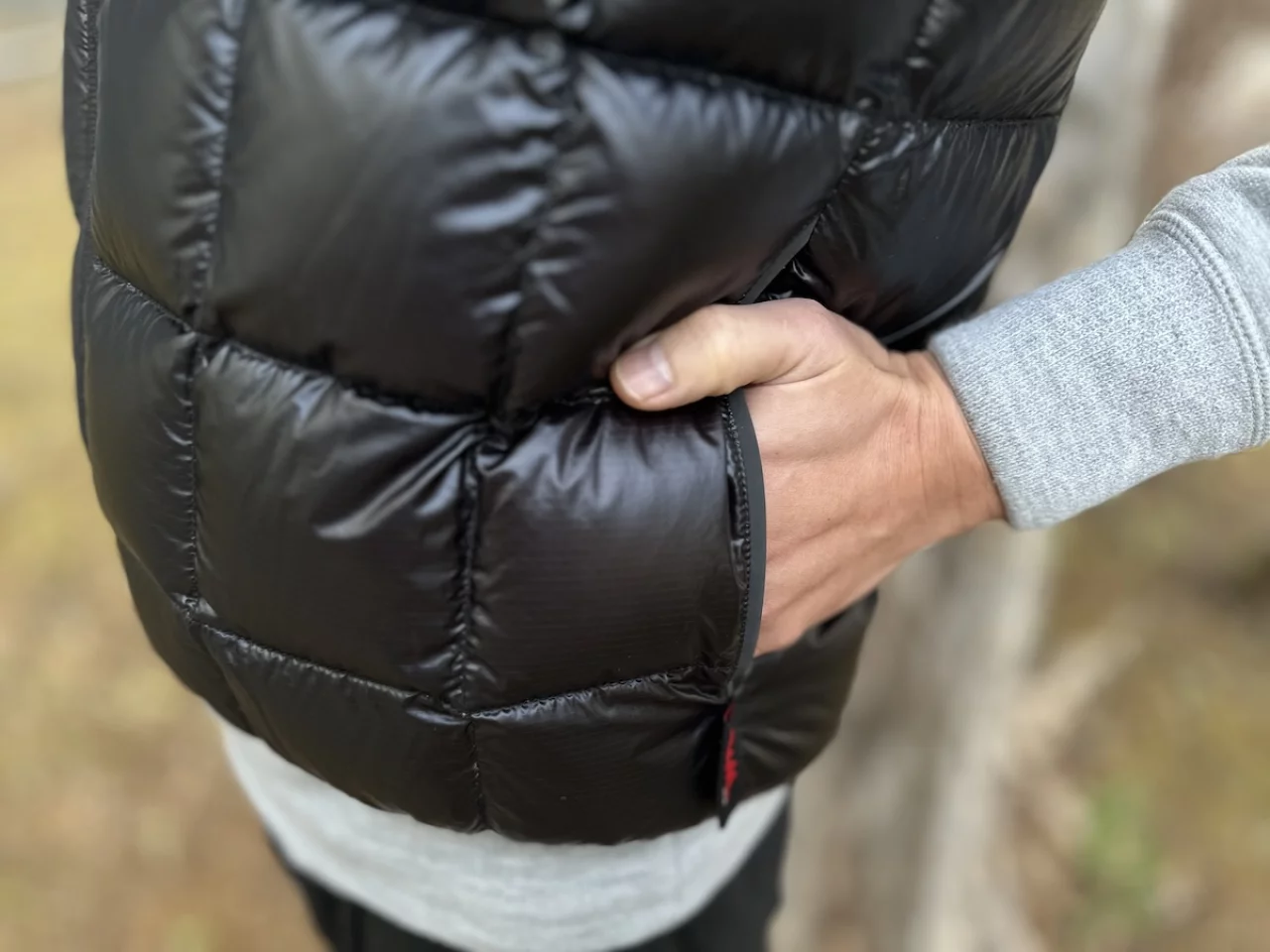 左右には表面にダウンが入ったハンドポケットが備わっており、ポケット内部は非常に大きいのでグローブをした状態でも手を奥まで入れることができます。