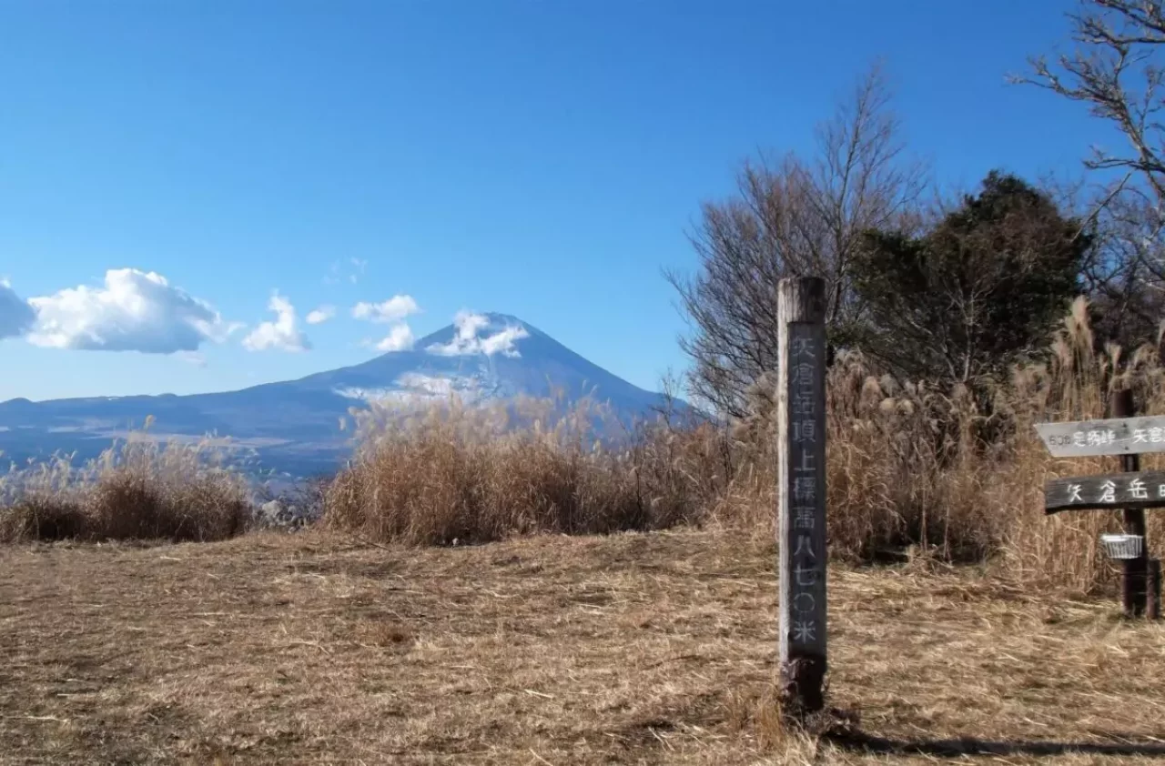 箱根と丹沢の間に広がる足柄山地に位置する矢倉岳は、お椀を伏せたような独特な山容のため、遠くからでも一目でわかります。独立峰的存在なので山頂からは遮るもののない360度のパノラマが広がり、箱根連山や大涌谷、富士山が展望できます。