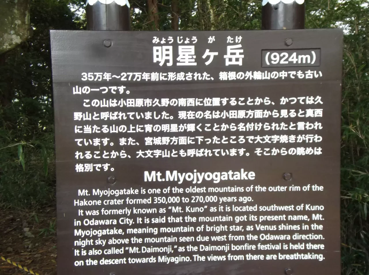 | 山の名前 | 明星ヶ岳(みょうじょうがたけ) |
