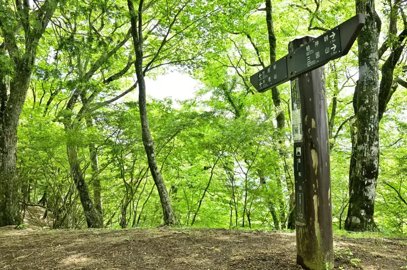 登山道は標識が随所に設置されているので道迷いの心配がありません。コースの序盤は樹林帯を進み、分岐から先は徐々に岩場の道が険しくなります。登りごたえがありますが、山頂に到着すれば素晴らしい景色が出迎えてくれます。