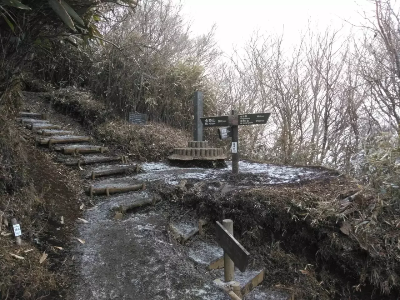 谷峨駅から登山口まで徒歩約30分。吊り橋を渡り、標識に沿って進みます。登山道は緩やかに標高を上げて行きますが、全体的に歩きやすく、途中にはトイレもあります。