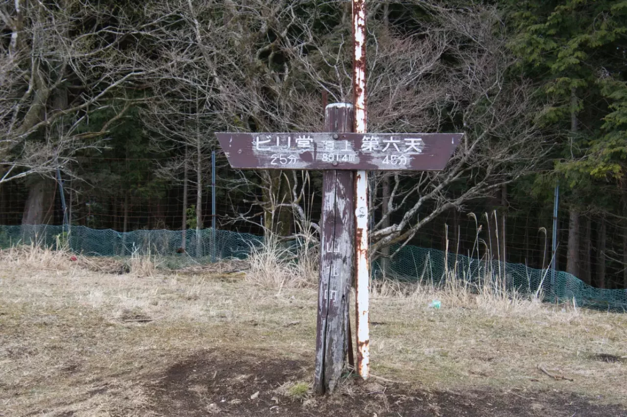 山頂はさらに登った先にあり、小さな祠と案内板があります。