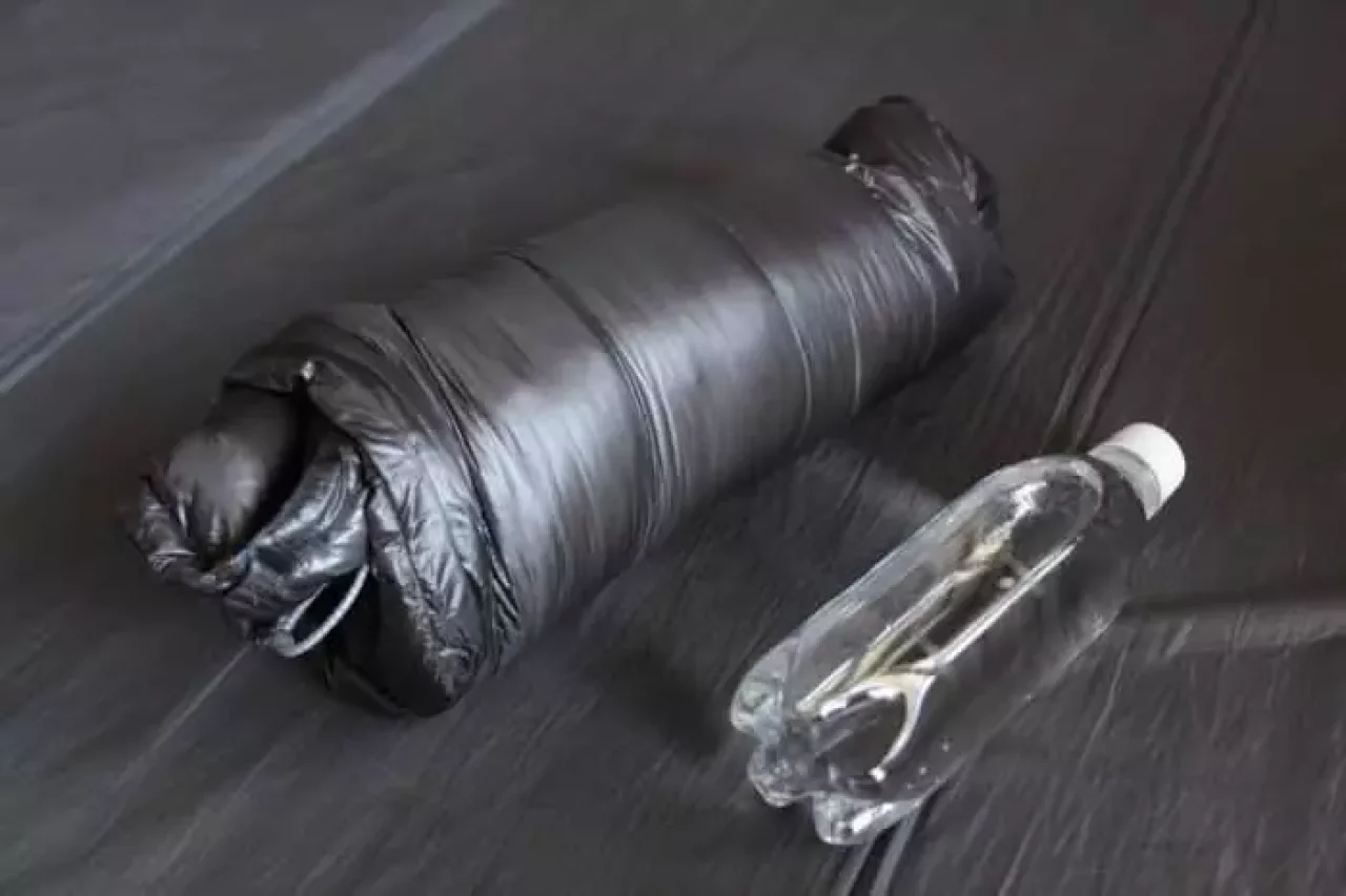 袖口に収納することで、おおよそペットボトルほどの大きさになります。