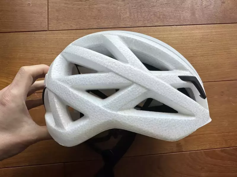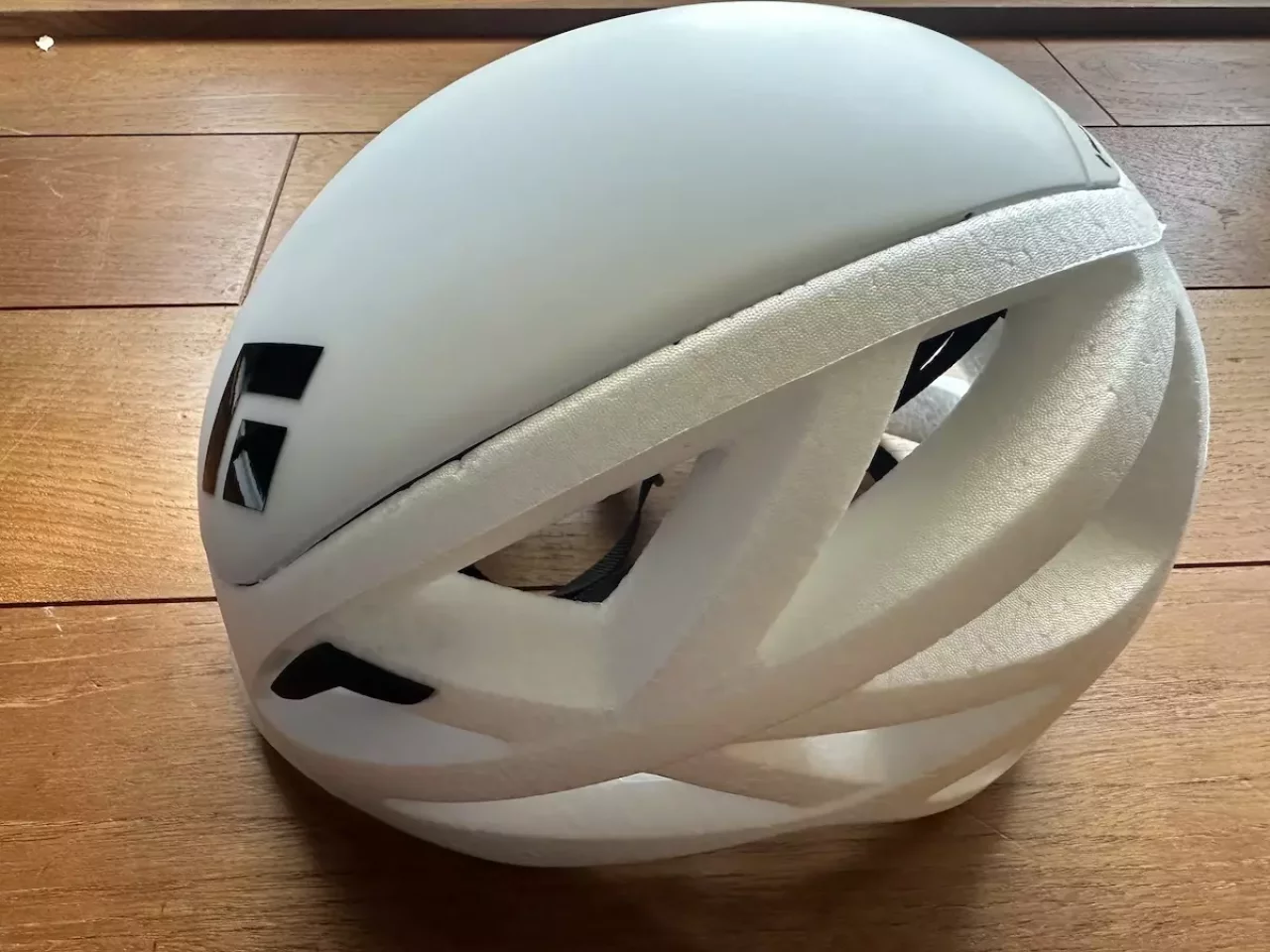 ブラックダイヤモンドのベイパーはインモールドの軽さとハードシェルの耐久性を備えたハイブリットタイプで、衝撃のかかる頭頂部のみポリカーボネイトとEPSを組み合わせ、さらに補強材ALUULAをサンドイッチすることで強度を高めています。