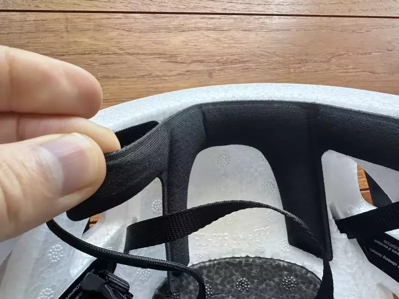 頭頂部とおでこに当たる部分には、内側にベルクロテープで取り外しが可能なクッション材が備わっており、フィット感を高めるとともに汗をかいた時にこの素材が吸収し、顔に汗が流れることを抑制します。