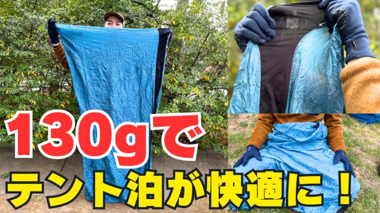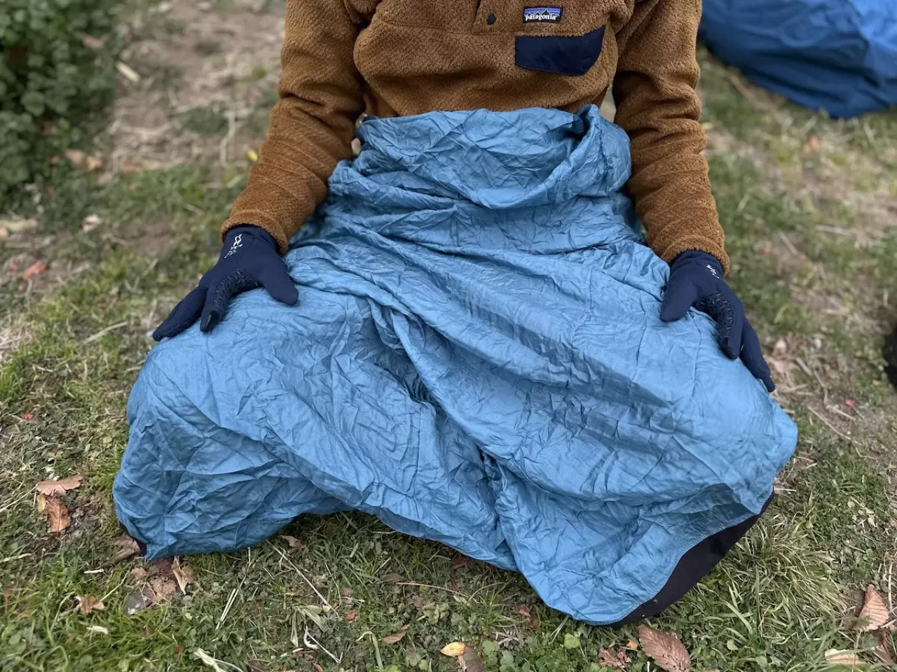 寝るだけでなくズボズボっと足先から胸あたりまでシルクライナーに入ってあぐらをかいて休憩するような使い方もできて、下半身を温めることもできます。