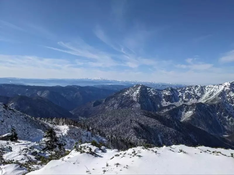 急登を登ること30分。樹林帯がひらけて白山方面が見えてきました。