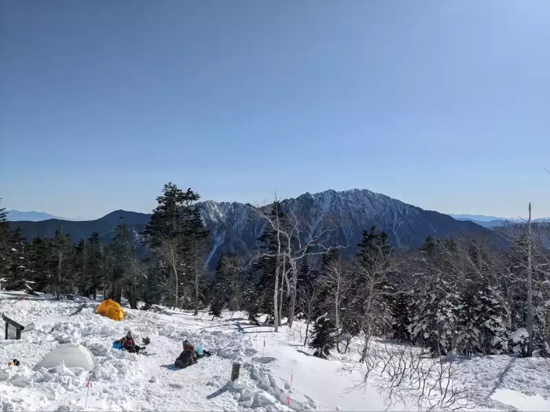 西穂丸山からは厳冬期北アルプスの壮大な雪山を眺めることができます。丸山は西穂高岳山頂に向かう途中の小ピークのため、夏山の時期に通過された方も多いのではないでしょうか。新穂高ロープウェイより一気に標高を超えて、登山口から片道2時間程度で北アルプスの銀世界を楽しむことができるので、雪山を始めたばかりの方にも是非お勧めできる山旅です。