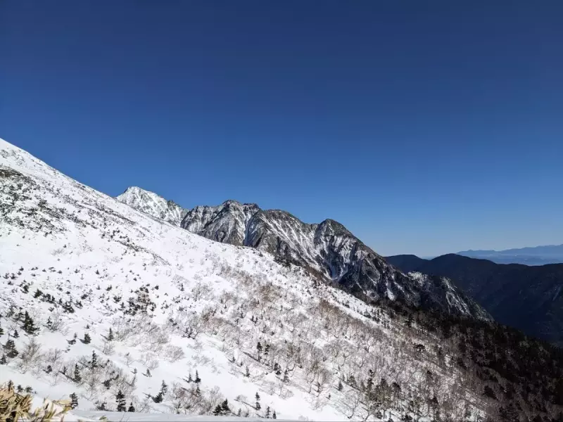西穂高岳山頂までは中級以上のコースです。また西穂独標直下もコンディションによっては岩と雪のMIXとなり経験者向けになるのでご注意ください。| コースタイム | 3時間程度 |