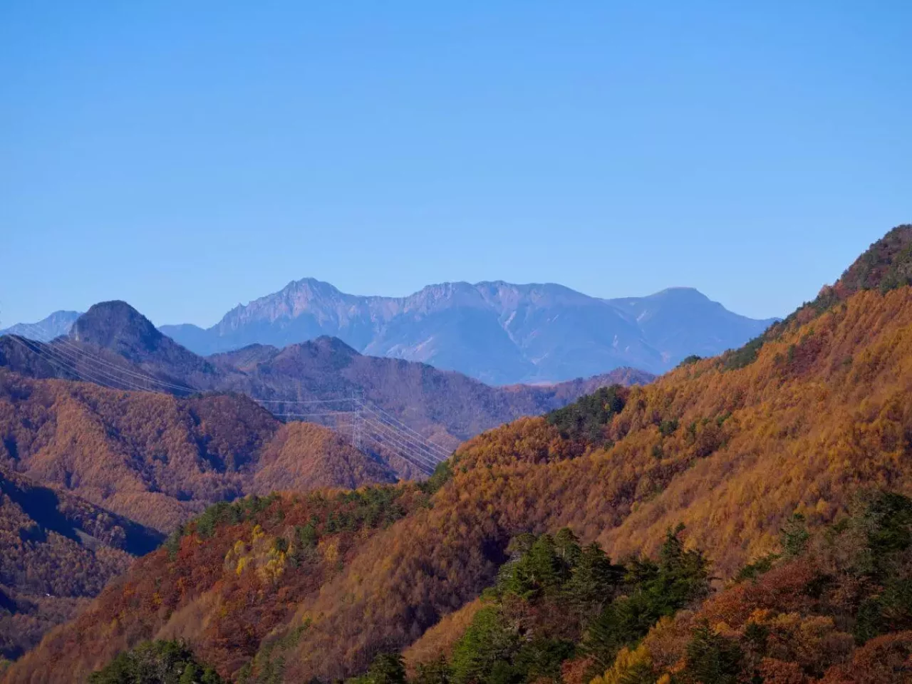 なかでも秋の紅葉シーズンには、八ヶ岳連峰から始まり南佐久の山々、そして野辺山高原へと順々に紅葉が下りてきます。紅葉した山肌が織りなす光景は、非常に美しく、どこまでも続いていくような幻想的な景色が広がります。