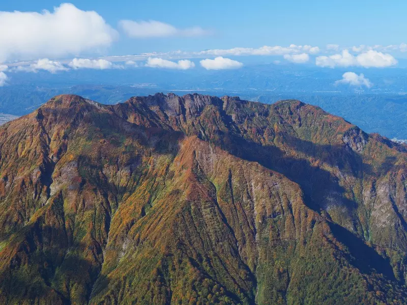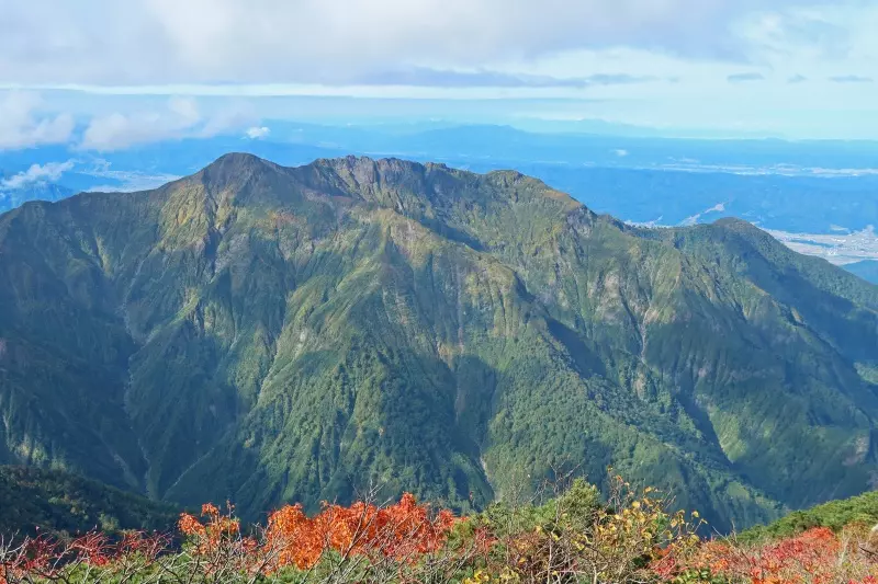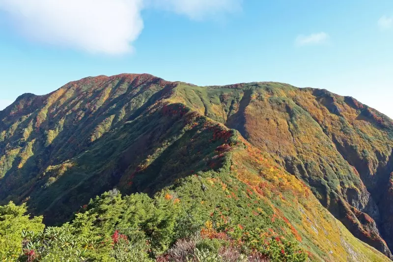 目を奪われる稜線とダイナミックな山容。尾根筋からは素晴らしい眺望とともにかわいらしい高山植物が目を楽しませてくれ、秋には山頂から山麓まで色鮮やかに染まる紅葉が観るものを魅了します。