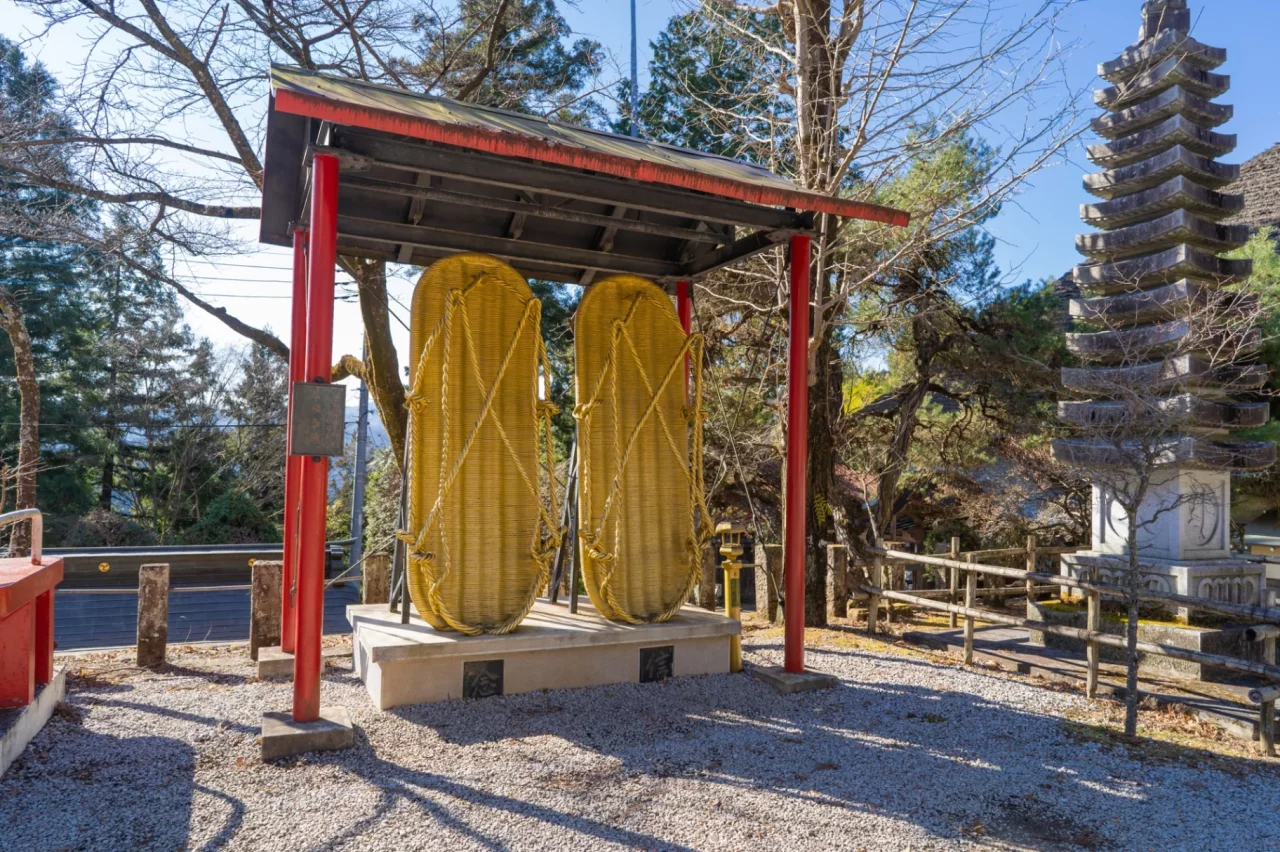 ハイカーに人気のある手作りのわらじのお守りは、お土産におすすめです。