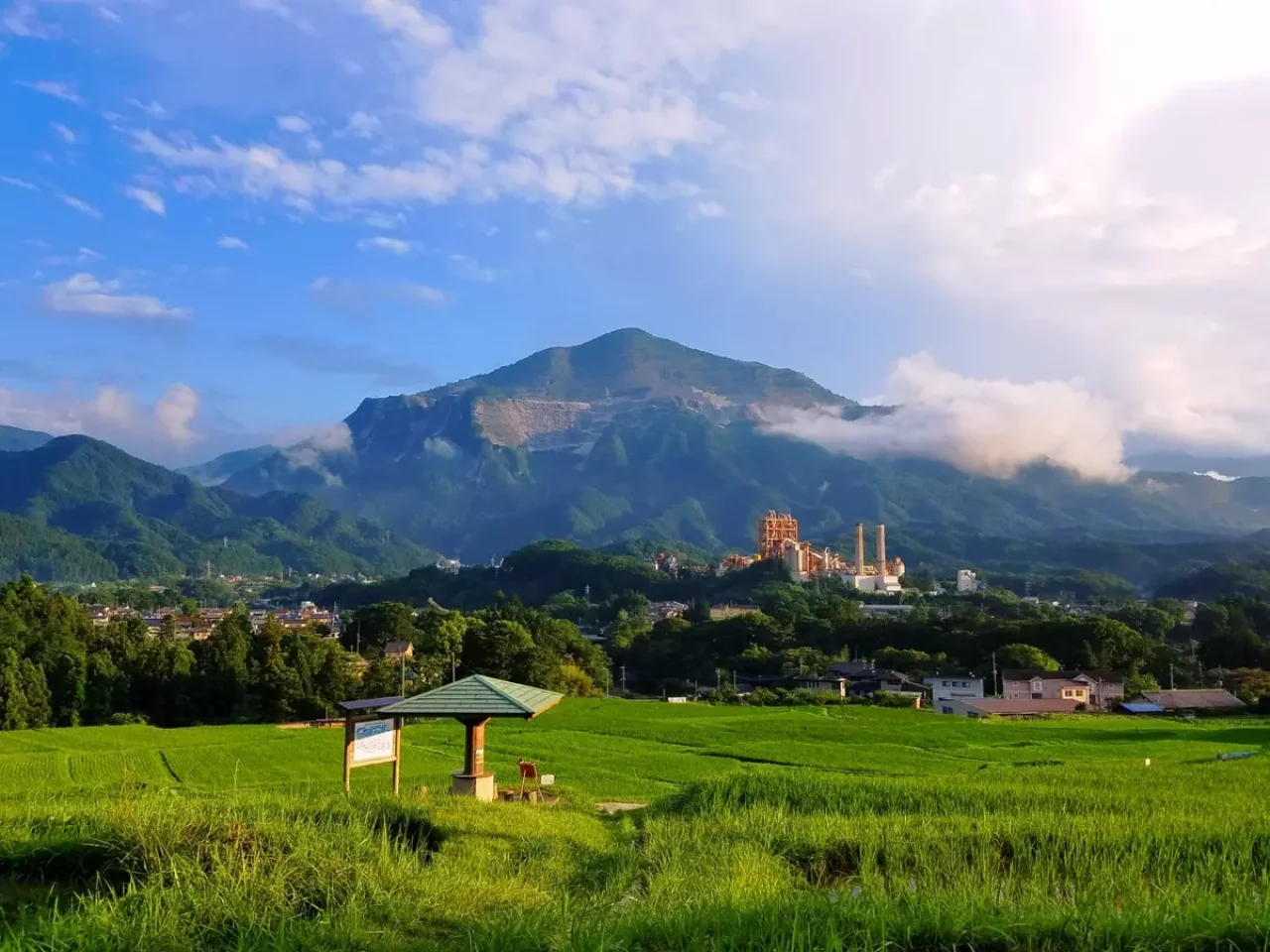 良質な石灰岩でできた山ですが、採掘により途中の斜面が大きく削り取られています。かつてここで採掘された石灰岩がセメントとして都市建設に使われ、現在の東京の高層ビル群や交通の礎となっているのです。