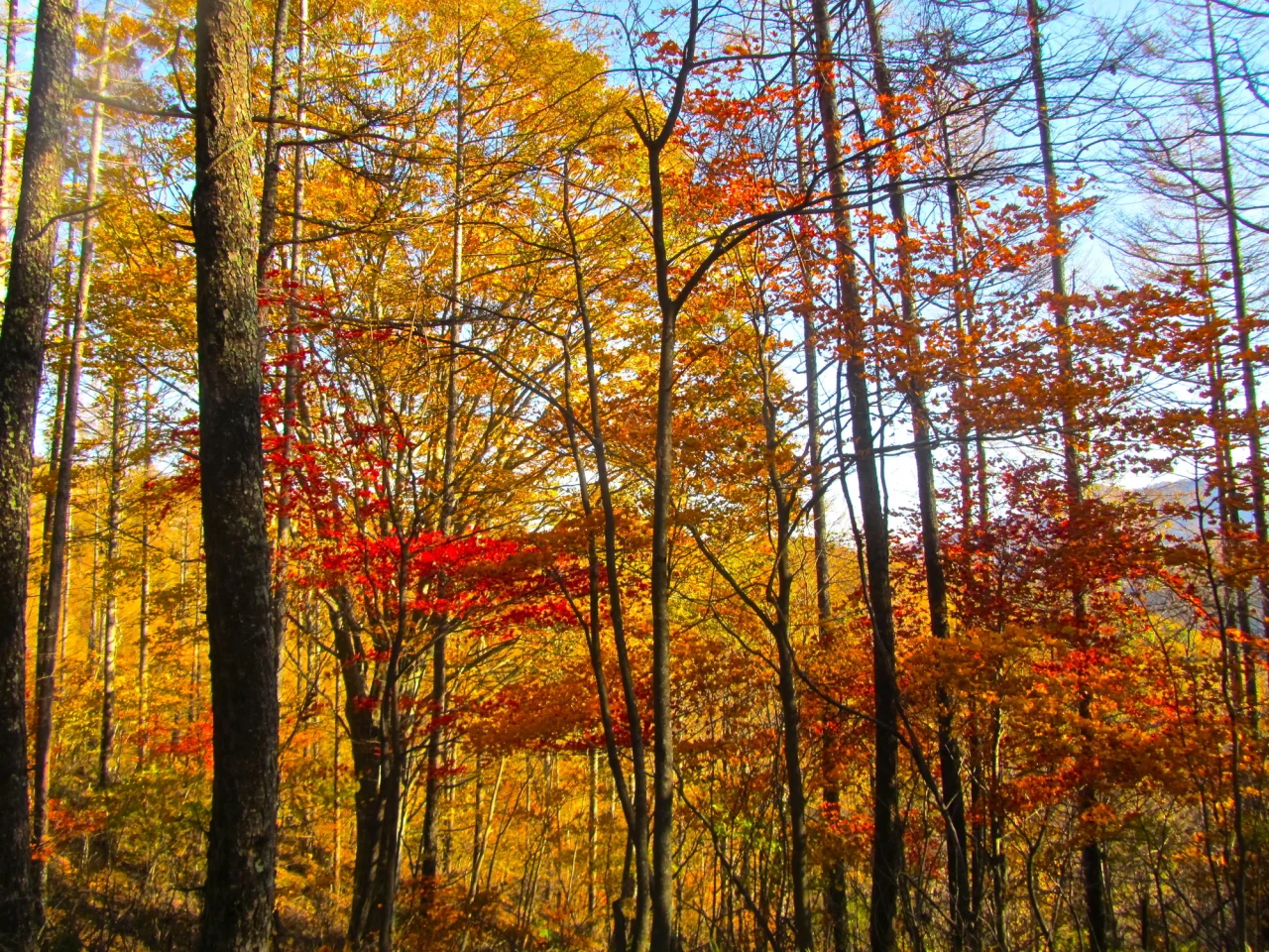 魅力その①カラマツとカヤの美しい紅葉