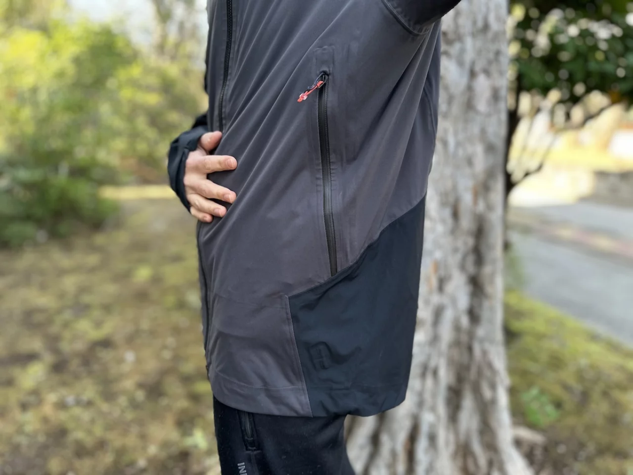 左右には手首までもゆうゆうに入れることができる大きなハンドウォーマーポケットが備えられています。このポケットは止水ジッパーで閉じることができるので、中に濡らしたくないものを収納しておくのにも便利です。