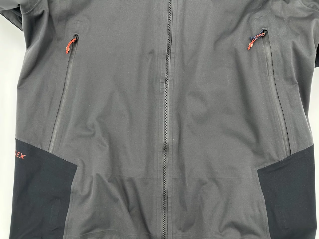 それによって透湿性は他のモデルがフード、肩、腕、腰のサイド部分も耐水圧が35,000g/㎡-24hと言う数字ですが、キネティックアルパイン2.0ジャケットは、25,000g/㎡-24hと低い数値に変わっています。