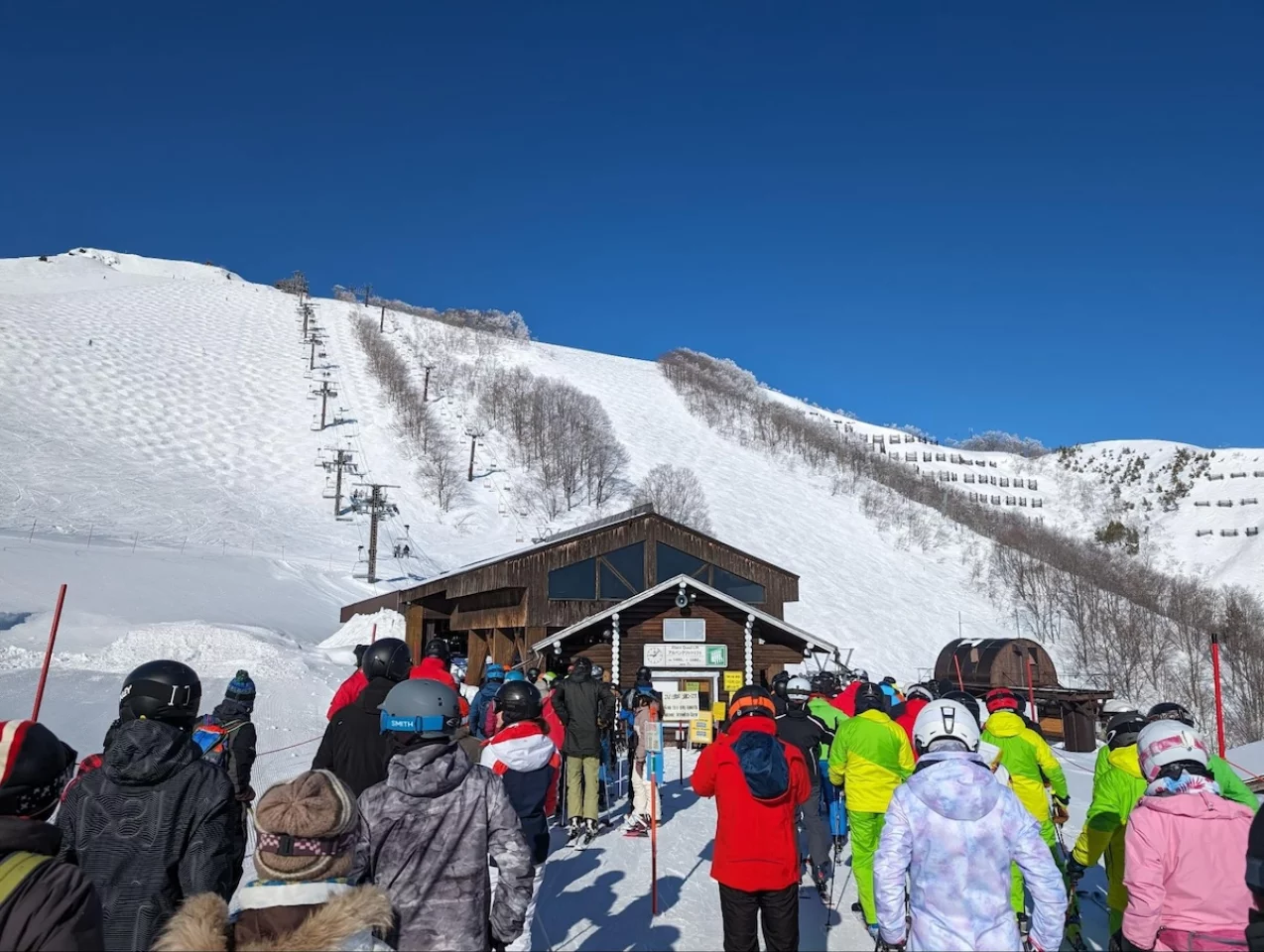 周りは、ほとんどがスキーやスノーボードのお客さん。板も持たずザックを背負っているので若干浮きました。笑