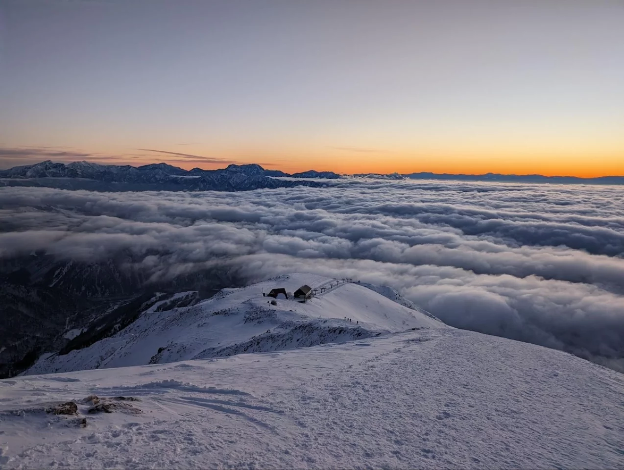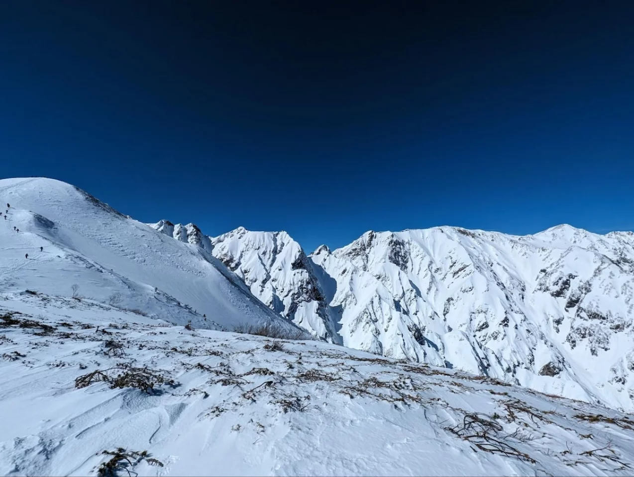 冬季北アルプスの入門ルートと言われている八方尾根より登り、雪化粧をした白馬三山や五竜岳、鹿島槍ヶ岳はとても圧巻で、2月中旬には多くの登山者が訪れていました。