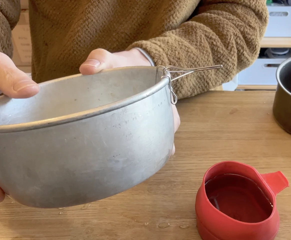 なのでコーヒーを淹れる時に、少ないお湯の量でコーヒーを入れることができます。カップラーメンなどを食べる時は僕が持っているクッカーの場合は特に問題なくお湯を入れることができたのでワイヤースキッターは使っていません。